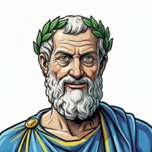 古代ギリシアの哲学者。西洋哲学の祖とされる人物。「無知の知」を自覚し、街頭での対話(問答法) を通じて人々に善や正義を問い続け、魂(プシュケー)の重要性を説く。著作は残さず、その思想は弟子のプラトンらが伝えた。若者を惑わせた等の罪に問われたが「悪法もまた法なり」と、死刑判決を受け入れ70歳でその生涯を閉じる。